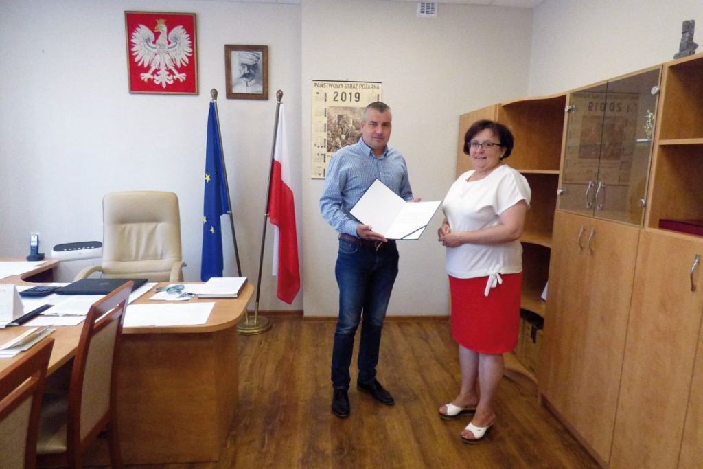 Z kolei w gminie Obryte, 6 sierpnia, wójt Sebastian Mroczkowski wręczył wyłonionej w drodze konkursu Agnieszce Bali akt powierzenia stanowiska na dyrektora Zespołu Placówek Oświatowych w Obrytem na okres 5 lat szkolnych, tj. do dnia 31 sierpnia 2024.