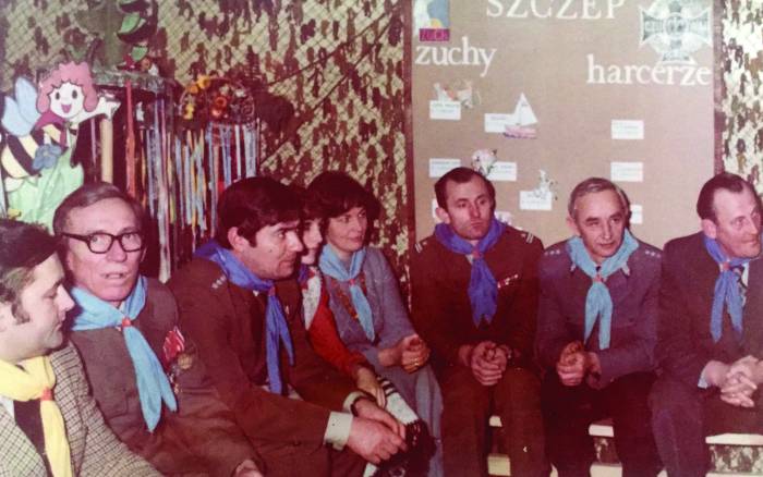 Namiot drugi (Marzena Zielińska, Małgorzata Obłudka, Beata Dzikowska, Lidia Swinarska, Agnieszka Płochocka, Ewa Kozłowska) popisały się sześcioma strofami pieśni plus refren. Trzecia zwrotka brzmi następująco: Student Adam Klonowski/Głowę nosi wysoko/ aby wszyscy poddani/Spoglądali mu w oko. I trzeci namiot: Teresa Tyczyńska, Joanna Żołnierzak, Grażyna Kaczyńska, Beata Kucharska, Anna Szymańska, Zofia Szulecka, Agata Jankowska, Beata Jeleń, Agnieszka Pieńkos popełnił pieśń pt. “Piosenka obozowa namiotu 3”, a w niej m.in. słowa: Po południu zawsze jest siatkówka,/ umęczenie wszystkich nas./Nie pomoże teraz już wymówka,/chciałaś sportsmenką być – no to masz. 7 października – Dzień MO i SB “Jak co roku odbyło się spotkanie młodzieży z porucznikiem Stanisławem Godlewskim. Odbyła się dyskusja na temat znaczenia działalności aparatu MSW oraz milicjantów w procesie prawidłowego funkcjonowania społeczeństwa oraz zapewnienia poczucia bezpieczeństwa i spokoju obywateli PRL”. Następnie harcerze wraz z funkcjonariuszami MO złożyli wiązanki na zbiorowej mogile funkcjonariuszy, którzy polegli w walce o utrwalenie władzy ludowej.* Polski Komitet Olimpijski zawiadomił ucznia Bogusława Bukowskiego o tym, że zajął szóste miejsce w konkursie rysunkowym 36 WYŚCIG POKOJU. Organizatorem konkursu byli: Polski Komitet Olimpijski, “Trybuna Ludu” i MOiW. Bogusław, zdradźmy, otrzymał w nagrodę buty treningowe. * Oto 300-lecie zwycięstwa króla Jana III Sobieskiego pod Wiedniem, a w związku z tym uroczysta akademia zorganizowana pod kierunkiem pań: Jadwigi Bulkowskiej i Haliny Zaleskiej. Uczniowie ubrani w stroje z epoki recytowali wiersze i śpiewali piosenki. “Ukoronowaniem wspaniałego widowiska był konkurs wiedzy o Sobieskim, w którym udział wzięli: Wanda Jarząbek, A. Świstak, Dariusz Chmielewski, A. Biernacka, Z. Jóźwik i Hanna Pawłowska”.