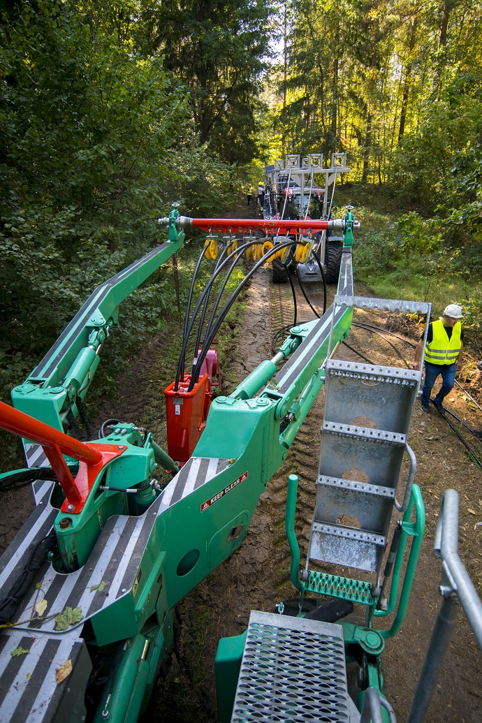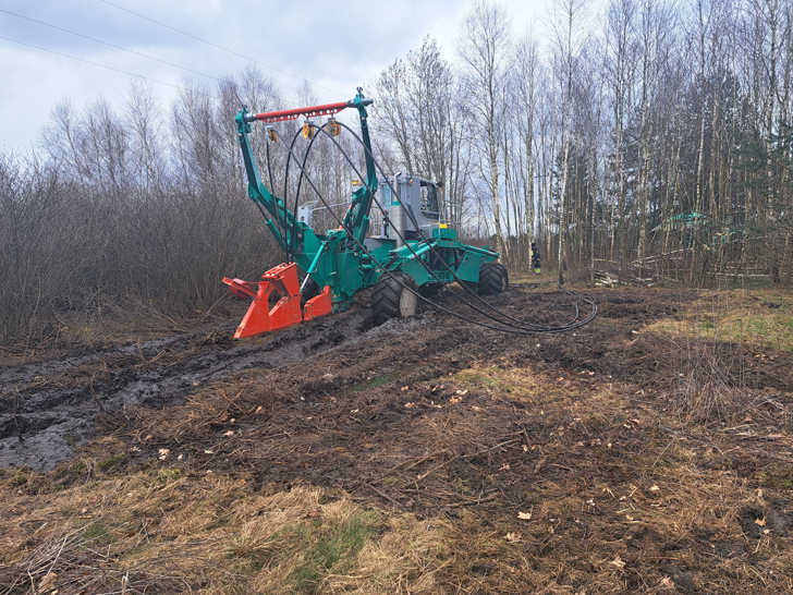 Na potrzeby kablowania linii SN, spółka zakupiła specjalistyczne maszyny, stosujące system układania kabli metodą płużenia. Zestaw składa się z dwóch pojazdów. Jednostka układająca jest przymocowana do lemiesza pługa w sposób umożliwiający jej regulację, co pozwala elastycznie dopasować konstrukcję do wszelkich krzywizn i nierówności terenu. Pojazd wyciągający, który zakotwicza się do podłoża za pomocą płyty stabilizującej, ciągnie pług ze stałą siłą do 180 ton przez każdy teren lub wodę układając podwójny ciąg kablowy. Kable przewożone są na bębnie zamocowanym na pługu.