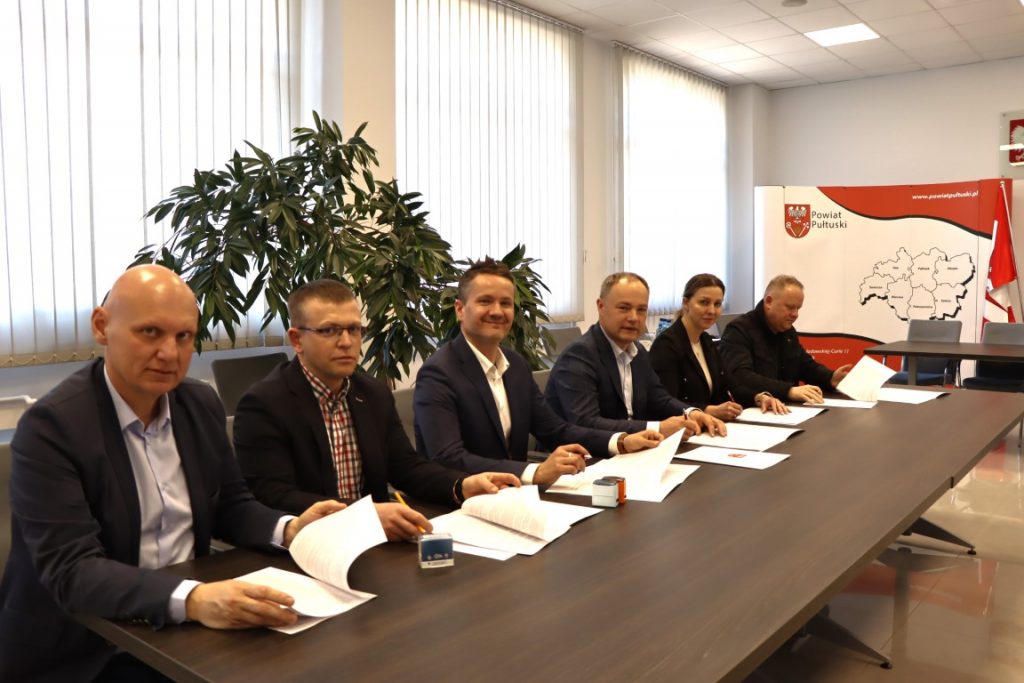 W czwartek 3 kwietnia, w Starostwie Powiatowym w Pułtusku, zostały podpisane umowy na wykonanie dokumentacji projektowej przewidzianych do realizacji trzech inwestycji drogowych w Powiecie Pułtuskim – Budowy mostu wraz z przebudową drogi powiatowej nr 1821W w miejscowości Winnica, Przebudowa drogi powiatowej nr 1821W ul. Strażacka i Miodowa w miejscowości Winnica oraz Przebudowy drogi powiatowej nr 1821W na odcinku Winnica-Bielany. Umowy z wykonawcami podpisał Starosta Pułtuski Jan Zalewski oraz Wicestarosta Pułtuski Emilia Agata Gąsecka.