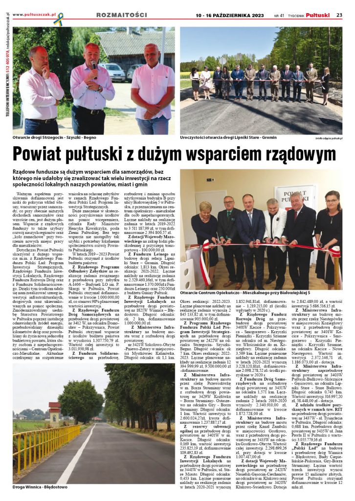 Powiat Pułtuski z dużym wsparciem rządowym