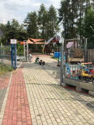 A tu basenik i parasol dla wnuków obok niby niebezpiecznego przejazdu