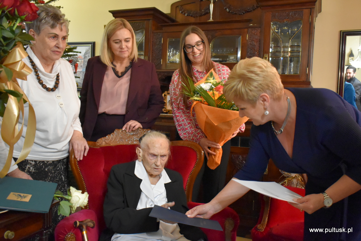 3 stycznia 2025 r. pani Henryka Niesiobędzka, mieszkanka Gminy Pułtusk obchodziła swoje 100. urodziny. Z tej okazji Jubilatkę odwiedziła Beata Jóźwiak Burmistrz Miasta Pułtusk. W imieniu własnym i Samorządu Gminy Pułtusk wręczyła kwiaty i upominek. Złożyła również gratulacje oraz najserdeczniejsze życzenia dobrego zdrowia, niegasnącej pogody ducha oraz kolejnych lat zasłużonego odpoczynku w otoczeniu najbliższych. Burmistrz podkreślała ,,iż to wielki zaszczyt, że mieszkanką Pułtuska jest osoba tak szlachetna, która swoim wysiłkiem, poświęceniem i pracą od lat zapisuje karty historii naszej Małej Ojczyzny”. Przekazała także Jubilatce list gratulacyjny od Premiera RP Donalda Tuska.