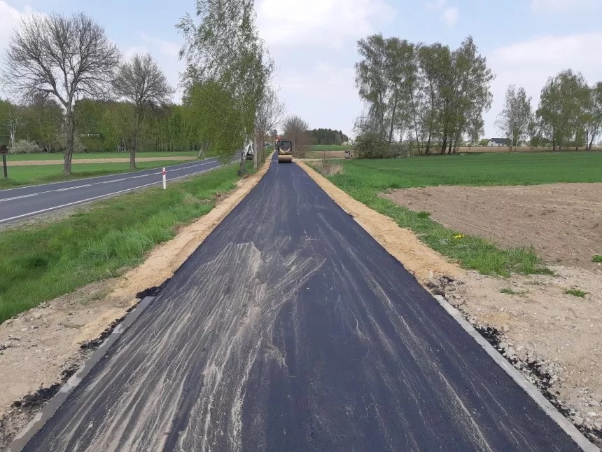 Z kolei firma INFRASTRUKTURA BUD rozpoczęła układanie asfaltu na ścieżce rowerowej. Docelowo powstanie ścieżka rowerowa na trasie Poniaty Wielkie – Winnica o długości 5,7km i szerokości 3 m wraz z poboczami, wzmocnionymi wjazdami do posesji, słupkami ochronnymi oraz oświetleniem w miejscach kolizji z drogami gminnymi.