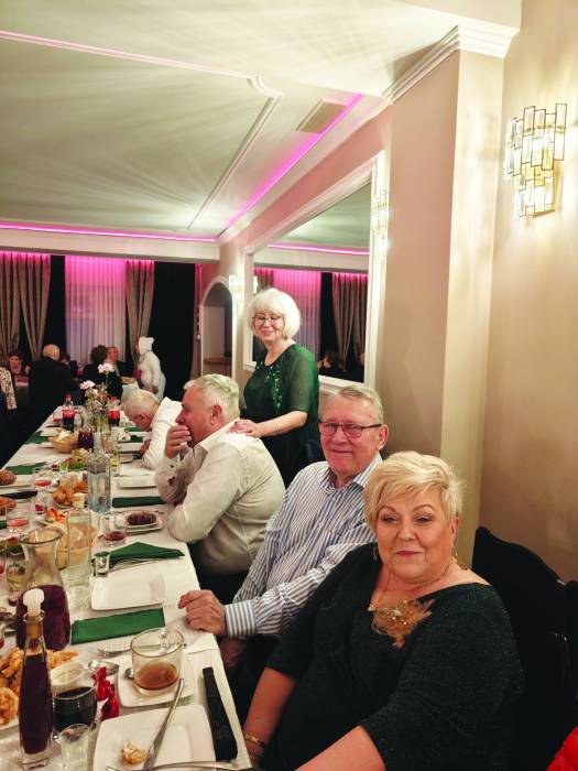 – W lutym było nas aż 82 osoby, nasze zabawy cieszą się dużym powodzeniem – powiedziała nam szefowa KLUBU pani Kazimiera Rakocka. – Dziś, w niedzielę, 2 marca mamy 68 osób. Tańczymy w oddzielnej od jadalnej sali od godziny 15:00. Gra nam świetny zespół muzyczny i śpiewający. W zabawie i biesiadzie towarzyszą nam goście z Zator i Wyszkowa. Zabawa jest składkowa, a konsumować będziemy dwa dania gorące – karkówkę z kluskami śląskimi i buraczkami oraz gulasz, na stołach mamy przystawki: jaja na cztery sposoby, śledziki, półmiski z wędlinami, nuggetsy oraz pączki.