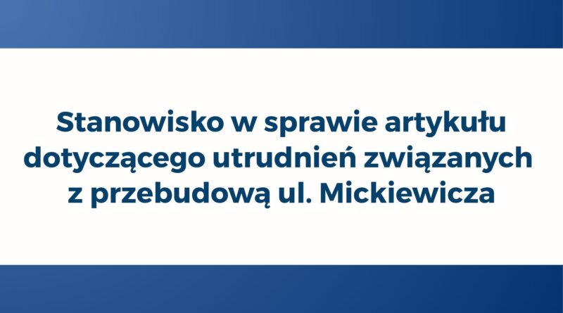 Stanowisko w sprawie artykułu dotyczącego utrudnień związanych z przebudową ul. Mickiewicza