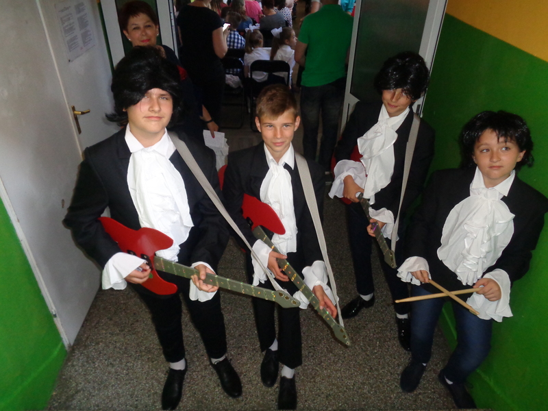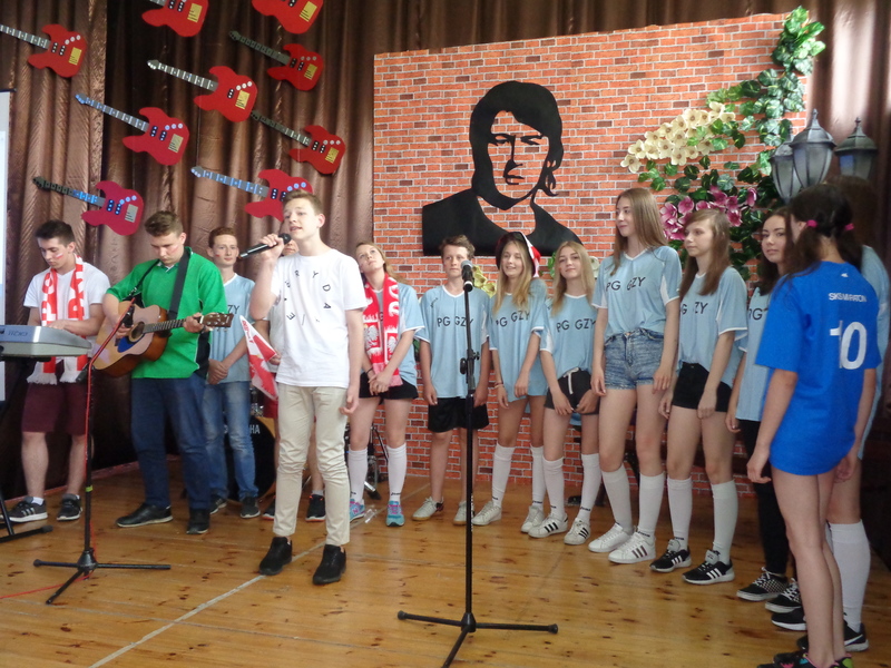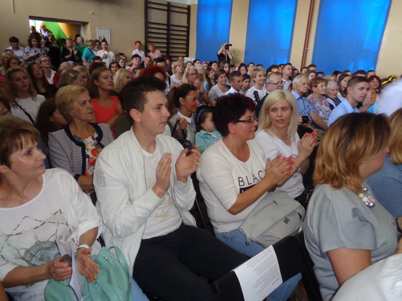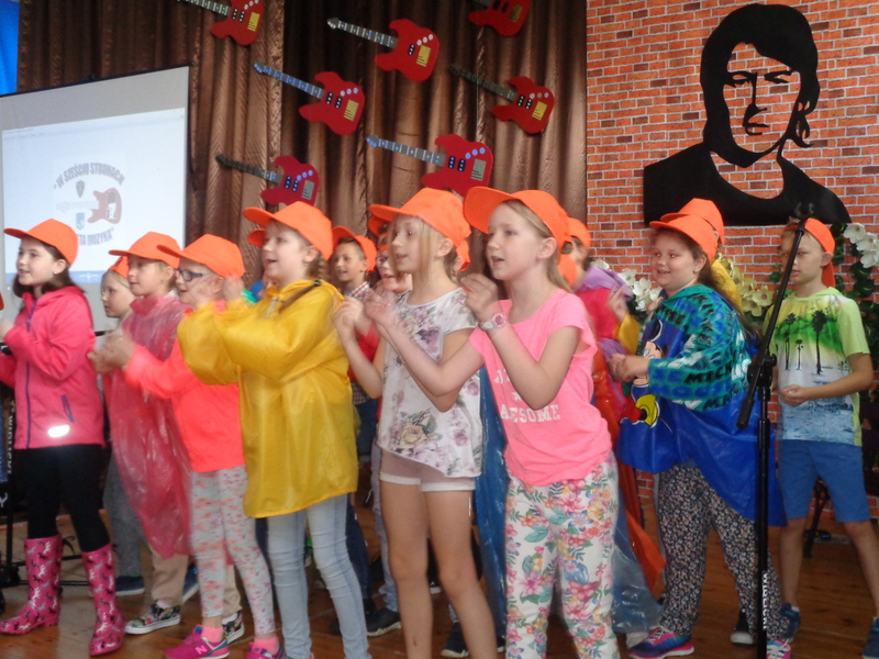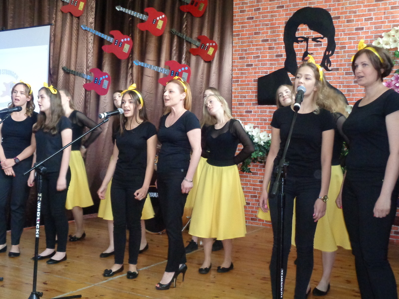Dopełnieniem konkursowych kreacji uczniowskich były prezentacje i nauczycielek (Jolanta Ladzińska i Marta Dobrzyńska), i uczniów (“Ciągle pada”), i wystąpienie poety Ladzińskiego, i wspomnienie o muzyku z telebimu, i bardzo dobre słowo wiążące, które świetnie podawali prowadzący uczniowie (doskonały Kuba).