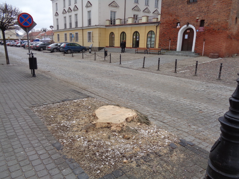 Na tę wycinkę pułtuszczanie reagowali słowami: „O, Boże!!!”. Jedno z zamęczonych drzew stało w sąsiedztwie Muzeum Regionalnego, dodawało urody temu pięknemu zresztą miejscu, drugie dalej, na drodze do fontanny, też po prawej stronie Rynku. Jeszcze jesienią ubiegłego roku służby miejskie „dodawały” im uroku, sypiąc wokół pni biały grysik. W tym roku, niestety, popadły w niełaskę głowy miasta, dlatego zginęły…