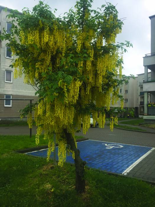 Zmierzając do ogrodu państwa Kowalczyków, zachwyciliśmy się przyblokowym bzem w kolorze lila i przychodnikową karaganę syberyjską, obfito i żółto kwitnącą akację. Sęk w tym, że głowy za nazwę nie damy – taką nazwę drzewka podał nam przypadkowy przechodzień.