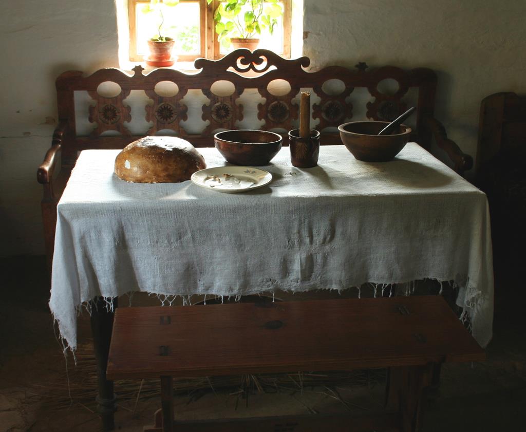 Sanockie Muzeum Budownictwa – stół wigilijny w chacie z Dąbrówki. Fot. Przykuta, na licencji Creative Commons Uznanie autorstwa 3.0