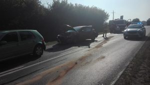 Do pierwszego zdarzenia drogowego doszło około godz. 10:00, w miejscowości Jeżewo, na drodze wojewódzkiej nr 571. Kierująca Oplem nieprawidłowo wykonując manewr wyprzedzania, uderzyła w Land Rovera. Pojazdy wjechały do przydrożnego rowu. Dwie osoby z obrażeniami ciała zostały przewiezione do szpitala.