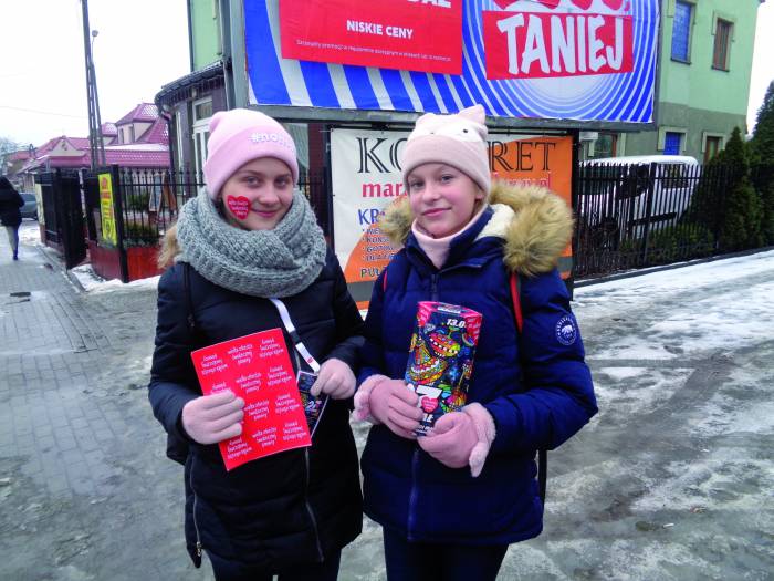 Amelia Sitkowska i Anna Mroziewicz, uczennice VII klasy popławskiej DWÓJKI: – W ORKIESTRZE bierzemy udział po raz pierwszy, nasze siostry zbierały wcześniej pieniądze dla WOŚP, więc mamy dobre wzory. Jest w nas chęć pomocy innym dzieciom, chorym, staramy się. Niestety, mało ludzi na ulicach, bo to niedziela bez handlu, więc trochę trudniej, ale damy radę! Jest coraz lepiej, gorzej było o ósmej. Poza tym musimy podchodzić do sprawy optymistycznie, bo jak będziemy smutne, nikt nie zwróci na nas uwagi, nic nie uzbieramy, trzeba motywować ludzi.