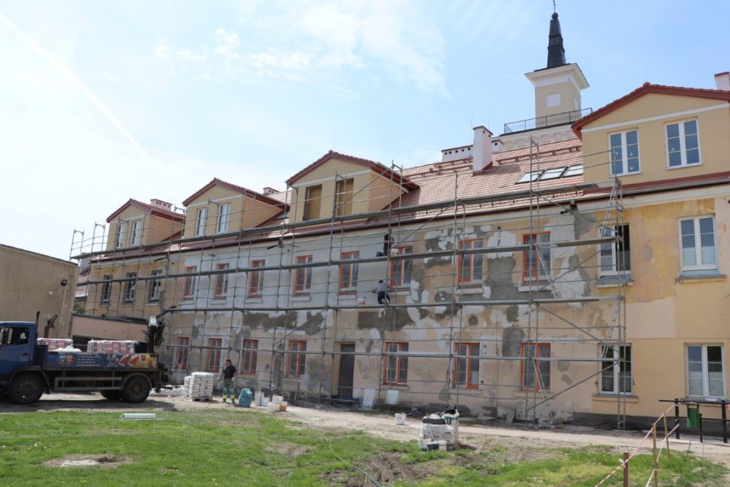 Obecnie remontowana jest północna części elewacji zewnętrznej budynku (od strony boiska szkolnego). Planowany termin zakończenia robót budowlanych przewidziano na sierpień br.