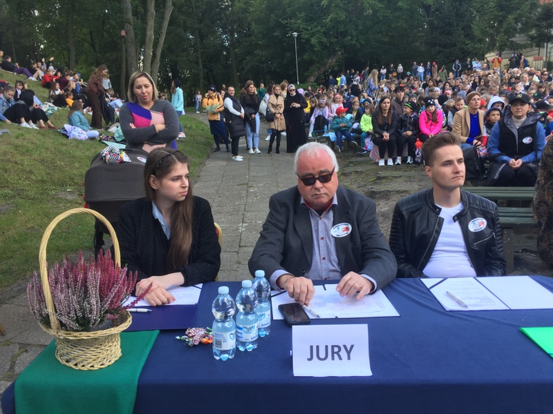 – Jest TRÓJKA? – pytał ze sceny burmistrz Wojciech Gregorczyk. – A JEDYNKA, a DWÓJKA? A CZWÓRKA? Szkoły ponadpodstawowe – Prus, Ruszkowski, Skarga? Serdecznie witam wszystkich przybyłych na konkurs. Scena będzie rozbrzmiewać muzyką i warto się dobrze zaprezentować, żeby jutro wystąpić z takimi gwiazdami jak Ex Maanam czy Ania Dąbrowska.