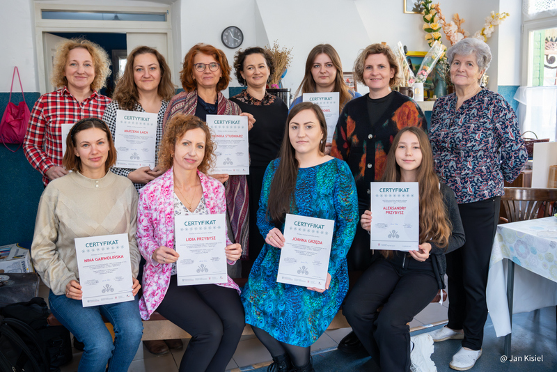 W ciągu 140 godzin zajęć, dziesięć uczestniczek warsztatów poznało tradycyjne wzory i elementy hafciarskie oraz nauczyło się techniki wykonywania haftu na delikatnym materiale. Na zakończenie projektu uczestniczki zaprezentowały samodzielnie wykonane prace warsztatowe – serwety i serwetki