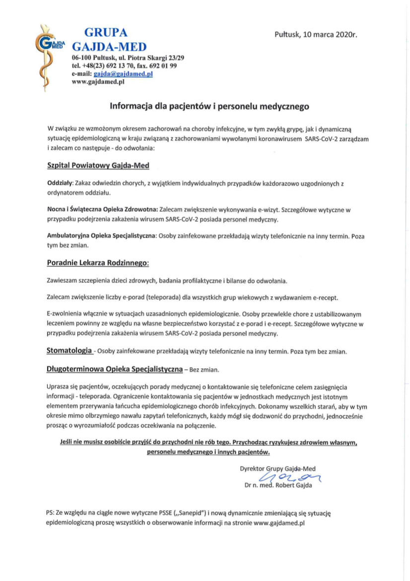 WAŻNY KOMUNIKAT GAJDA-MED