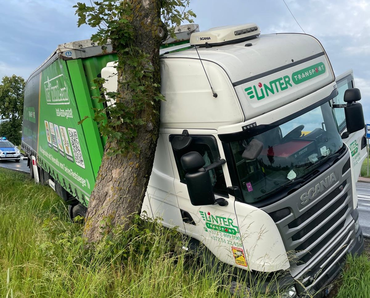 Pułtuscy policjanci pracowali przy zdarzeniu drogowym, do którego doszło na DK 61. 57-letni obywatel Estonii, kierując pojazdem ciężarowym zjechał na pobocze i uderzył w drzewo.