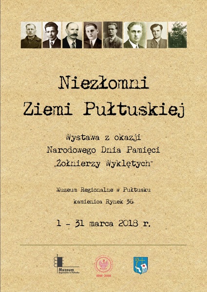 Wystawa „Niezłomni Ziemi Pułtuskiej” zorganizowana przez Muzeum Regionalne w Pułtusku z okazji Narodowego Dnia Pamięci „Żołnierzy Wyklętych” ma na celu przypomnienie postaci lokalnych dowódców antykomunistycznego podziemia niepodległościowego, którzy swoją walkę podejmowali m.in. na terenie dawnego powiatu pułtuskiego. Choć ogromna większość z nas nigdy ich nie poznała osobiście, to musi towarzyszyć nam refleksja, iż to jedni z nas: bo przecież często dobrze znamy ich braci, dzieci i wnuki; bo przecież – choć w innym czasie – bohaterowie ci stąpali po tym samym bruku, modlili się w murach tych samych świątyń, budowali domy i sadzili drzewa, które na co dzień mijamy. A jednocześnie dawali świadectwo ogromnej odwagi, bohaterstwa, miłości do Ojczyzny, której ofiarowali nie tylko młodość, ale często również życie. O tych prawdziwie NIEZŁOMNYCH pamięć zachowują nie tylko źródła historyczne, ale przede wszystkim żyjący wśród nas ich bliscy, sąsiedzi, przyjaciele. A warto, byśmy pamiętali wszyscy, również ludzie młodzi, którym tak trudno zrozumieć tragizm czasów zniewolenia.