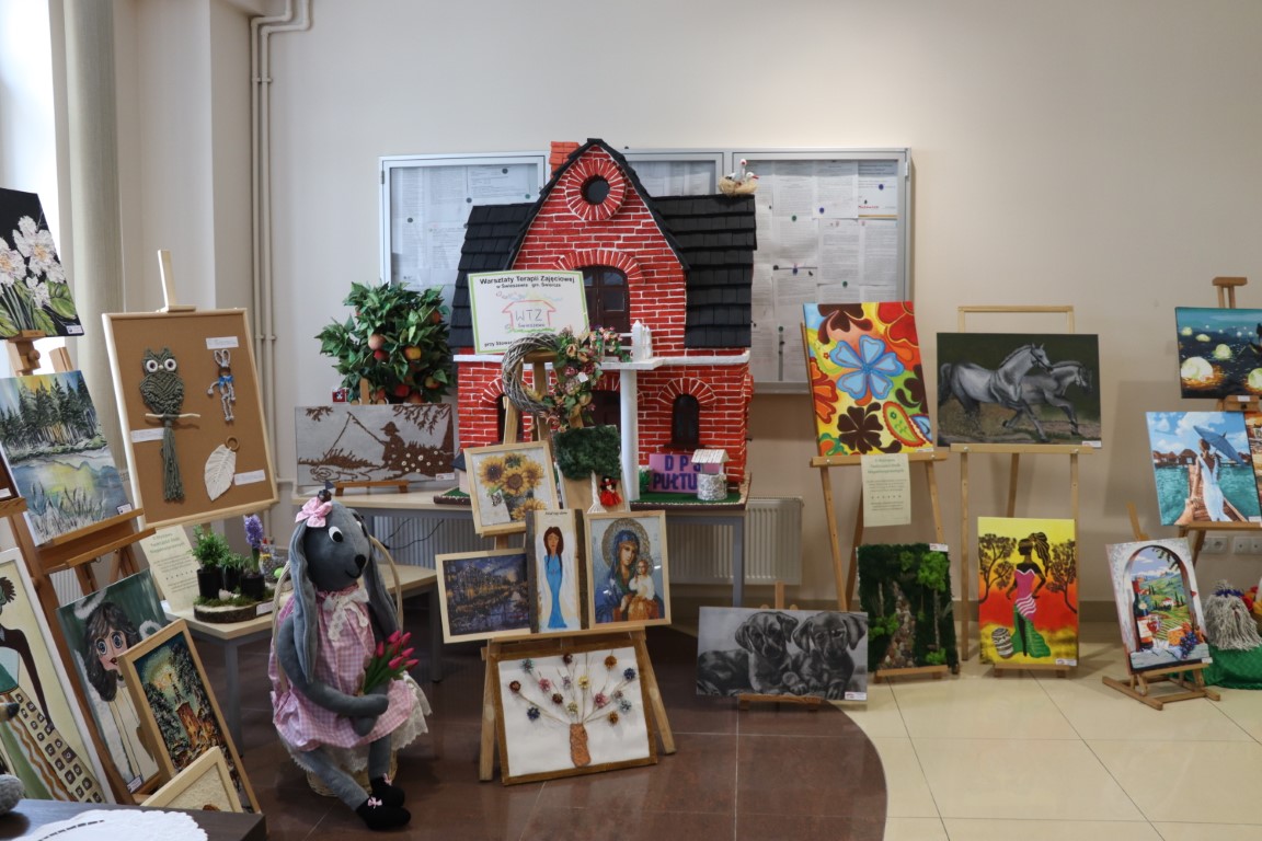 Na wystawie zaprezentowane zostały prace artystyczne wykonane podczas zajęć oraz warsztatów terapii zajęciowej prowadzanych w powiatowych jednostkach pomocy społecznej oraz placówce oświatowej.