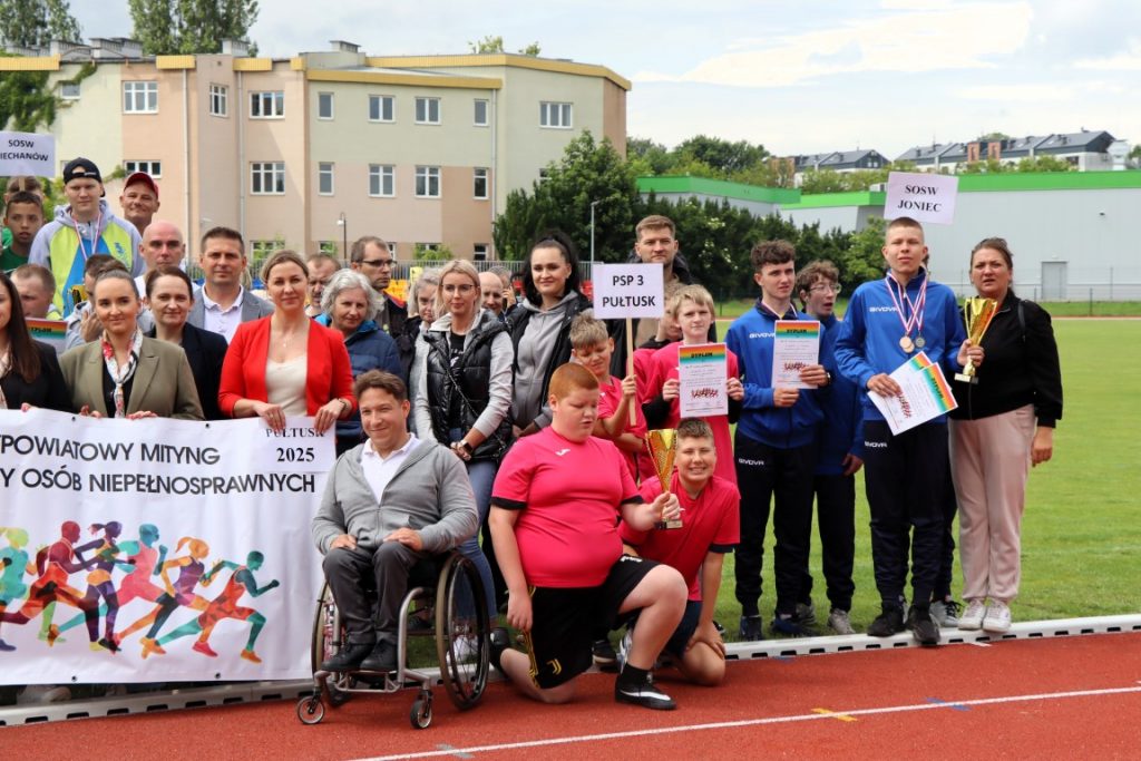 XXII Międzypowiatowy Mityng Lekkoatletyczny Osób z Niepełnosprawnościami już za nami. Mimo deszczowej aury wydarzenie przebiegło w doskonałej atmosferze i z pewnością na długo pozostanie w pamięci uczestników. Organizatorem sportowych zmagań, które odbyły się w środę 11 czerwca na stadionie Miejskiego Ośrodka Sportu i Rekreacji w Pułtusku, był Zarząd Powiatu Pułtuskiego, reprezentowany przez Wicestarostę Emilię Gąsecką i członków Zarządu Powiatu – Roberta Czyżewskiego i Wiesława Cienkowskiego. W imieniu radnych Rady Powiatu Pułtuskiego zawodników dopingował Przewodniczący Rady Tadeusz Nalewajk. Za współorganizację wydarzenia odpowiadały jednostki pomocy społecznej, koordynowane przez Powiatowe Centrum Pomocy rodzinie w Pułtusku.