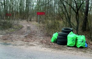 Mamy tu świetny przykład uwieczniony na zdjęciach tygodnikowego fotografa Henryka Mazurka. Niedaleko asfaltu prowadzącego na Ponikiew, niecałe 100 m za widocznymi na zdjęciu czerwonymi tablicami informującym o obszarze Natura 2000 i terenie Nadbużańskiego Parku Krajobrazowego (skręt w lewo przed mostkiem), jest dzikie wysypisko. Wprawdzie pracownicy nadleśnictwa jako co roku porządkowali teren tuż przy drodze, ale opisywane góry śmieci są już poza ich zasięgiem, przy wjeździe na pobliskie łąki. Widać, że śmieci są tu gromadzone od dawna i czas coś z tym zrobić.