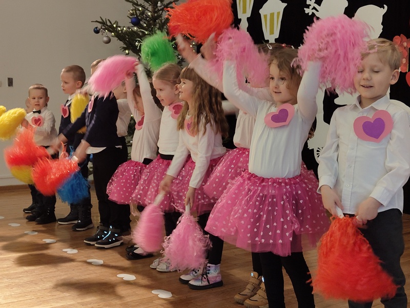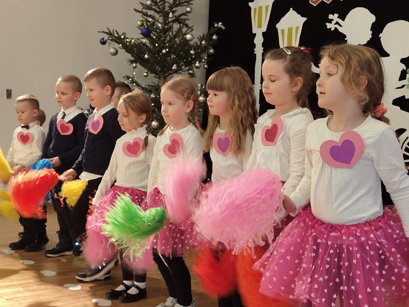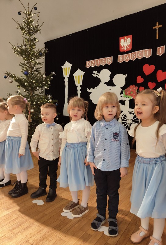 Kiedy dzieci weszły na scenę, ta zabarwiła się bajecznymi kolorami strojów. Maneż rozbrzmiewał piosenkami, dzieci tańczyły i śpiewały: Droga babciu, drogi dziadku, bardzo was kochamy i w podzięce tylko dla was taniec wykonamy…