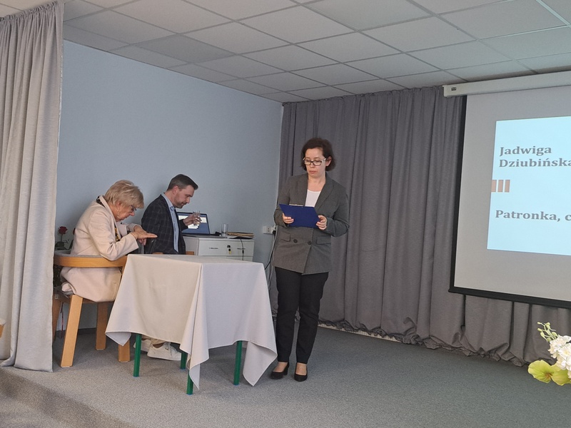 Wszystko to działo się 24 kwietnia i było częścią obchodów roku jubileuszowego szkoły. Popołudnie rozpoczęło się konferencją poświęconą patronce szkoły, zatytułowaną “Jadwiga Dziubińska – kobieta przyszłości”. Niezwykle ciekawie, w formie anegdoty bogato okraszonej ciekawostkami z życia Dziubińskiej, opowiadała o niej Maria Klonowska – prezeska Stowarzyszenia “Sokołówek”, którą zapowiedziała i przedstawiła zebranym dziennikarka Tygodnika Ciechanowskiego Izabela Koba – Mierzejewska.