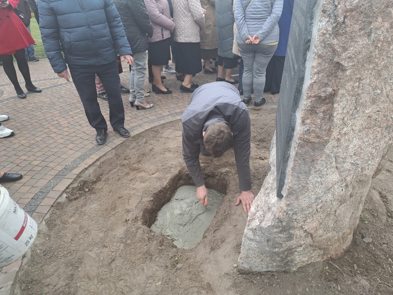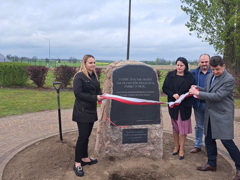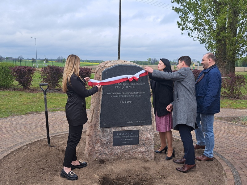 Po konferencji wszyscy zgromadzeni przeszli do szkolnego ogrodu, gdzie odsłonięto tablicę pamiątkową poświęconą tym, których już nie ma wśród nas – nauczycielom, pracownikom, uczniom szkoły w Golądkowie, pozostającym w pamięci i sercach szkolnej społeczności. Odsłonięcia dokonali wójt gminy Winnica Robert Wróblewski (absolwent szkoły), wicedyrektor Anna Kwiatkowska, przewodniczący Rady Rodziców Mariusz Tański oraz przedstawicielka uczniów – Julia Tomaszewska.