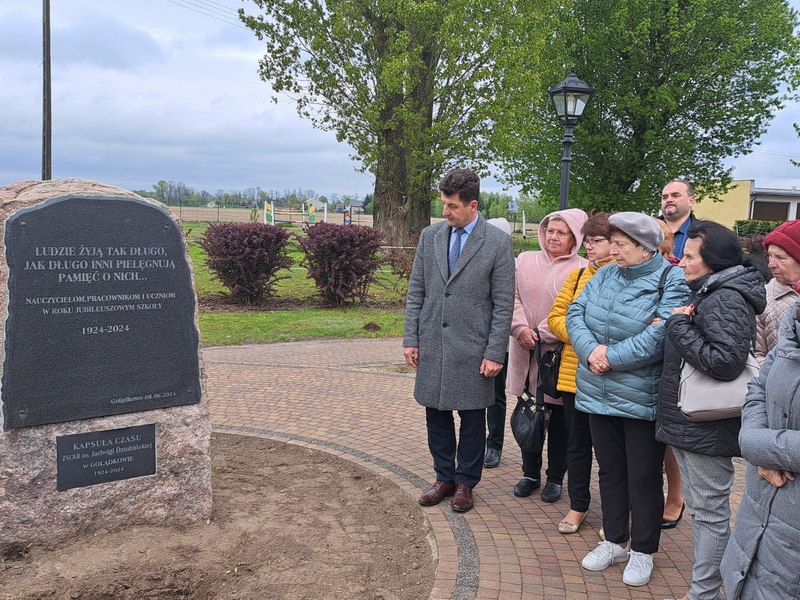 Kulminacją tego niezwykle ciekawego popołudnia było zakopanie Kapsuły Czasu, będącej śladem teraźniejszości pozostawionym dla potomnych. Pod tekstem prezentujemy wzruszający list od społeczności szkolnej, który zgromadzonym odczytała kierownik praktycznej nauki zawodu w ZS w Golądkowie Eliza Dembe – Stańczak. List znalazł się w kapsule wraz ze zdjęciami nauczycieli, pracowników i uczniów, aktualnym numerem Tygodnika Pułtuskiego, nośnikiem danych z elektroniczną wersją publikacji przygotowanej na 100-lecie szkoły. Świadkami tego wydarzenia byli nie tylko przedstawiciele szkoły, ale także licznie zgromadzeni członkowie lokalnej społeczności, której historia od 100 lat splata się z historią szkoły.