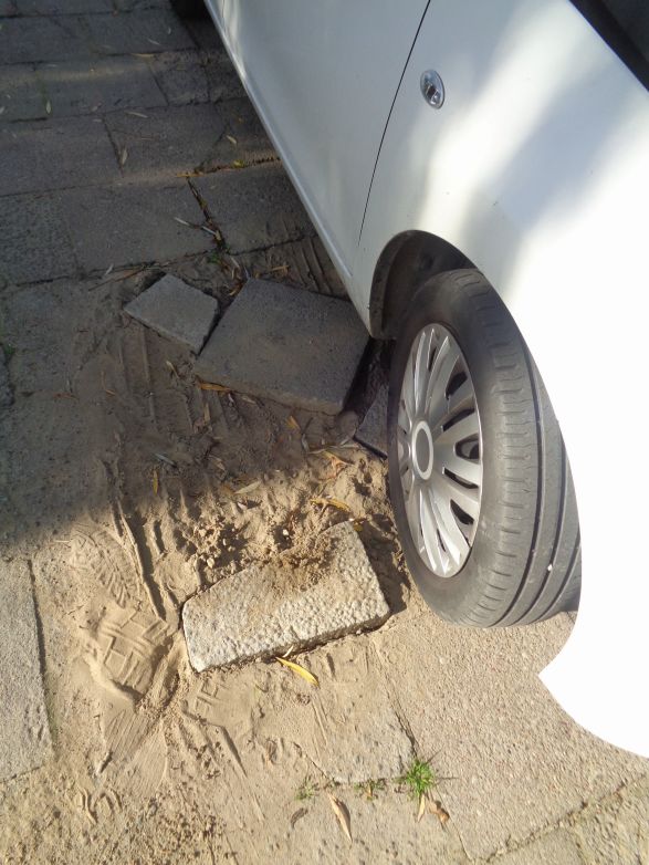 Z rozmowy dowiedzieliśmy się o trudnościach związanych z poruszaniem się mocno sfatygowanym chodnikiem, który ciągnie się tylko po jednej stronie jezdni, nad kanałkiem. Wskutek pułapek czyhających na przechodniów po zrujnowanym przejściu (popękane, przemieszczone, zapadające się płyty, wystające pokrywy kanalizacyjne, na sporym odcinku w ogóle brak chodnika) mieszkańcy poruszają się po jezdni, co jest niebezpieczne. Ulica bowiem jest dość ruchliwa – przechodzą nią ludzie z Popław i na Popławy, jeżdżą samochody. Samochody… Te stały się też zawalidrogami na chodniku – zaparkowane na nim, utrudniają przejście nie tylko poruszającym się o kulach i z wózkami dziecięcymi.
