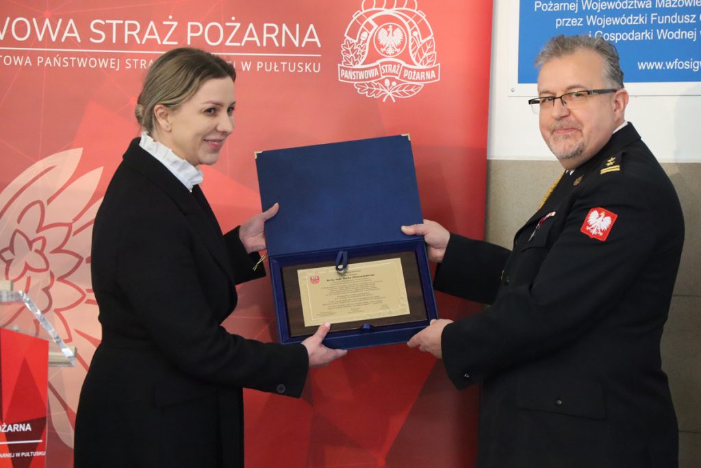 W tej ważnej chwili Komendantowi towarzyszyła najbliższa rodzina, szef pułtuskiej komendy PSP st. bryg. Maciej Piątek, strażacy zawodowi i ochotnicy, zaprzyjaźnieni komendanci ościennych jednostek, przedstawiciele władz Powiatu Pułtuskiego, władz miejskich i gminnych, a także pozostali zaproszeni goście. Podziękowania oraz najlepsze życzenia Zastępcy Komendanta Powiatowego Państwowej Straży Pożarnej w stanie spoczynku bryg. Jackowi Skurzyńskiemu oraz pamiątkowy upominek, w imieniu Samorządu Powiatu Pułtuskiego, przekazała Wicestarosta Pułtuski Emilia Gąsecka. Głos zabrał również Przewodniczący Komisji Bezpieczeństwa Rady Powiatu Pułtuskiego radny Mirosław Barszcz.