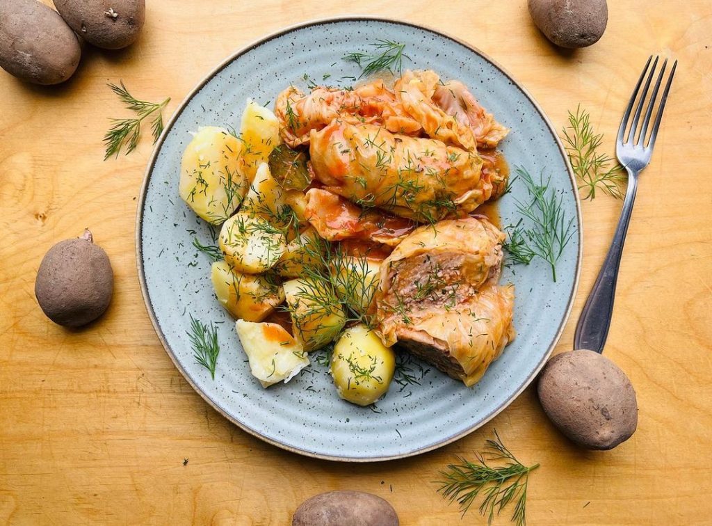 Na talerz wykładamy gołąbki i polewamy sosem, do tego ziemniaczki i koniecznie koperek☺.