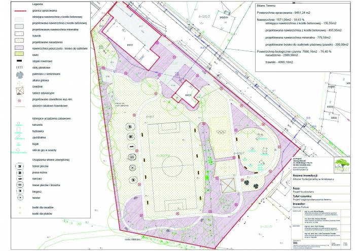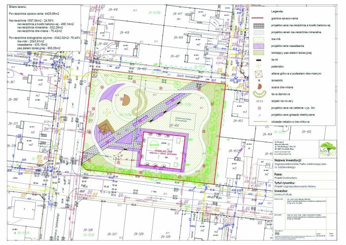 W ramach tzw. stref zieleni planowane jest wykonanie nasadzeń roślinnych, układów komunikacyjnych – nawierzchnię z kostki brukowej oraz nawierzchnię mineralną. Zamontowana zostanie również tzw. mała architektura – ławki, kosze, stojaki rowerowe, grill i altany.