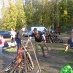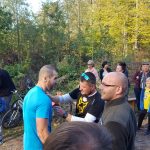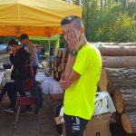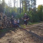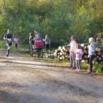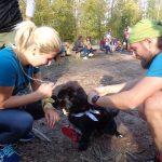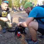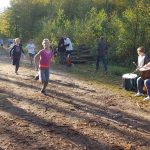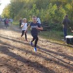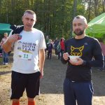 Wśród biorących udział w leśnych biegach spotykam warszawiaków – Justynę Czyż i Mateusza Trzcińskiego, którzy do Łachonia przyjechali z pieskiem Yogi, znajdką. – To jego pierwszy oficjalny bieg, a mój trzeci, biegłam w zeszłym roku, latem tego roku, w czerwcu, i biorę udział w dzisiejszym – mówi pani Justyna. – Staramy się brać udział w takich małych, kameralnych biegach, gdzie ludzie się znają, gdzie jest zupełnie inna atmosfera niż na kilkutysięcznych biegach. Tu wszyscy są uśmiechnięci, mili, dobrze się bawią. My też przyszliśmy się tu bawić – podaje pan Mateusz.