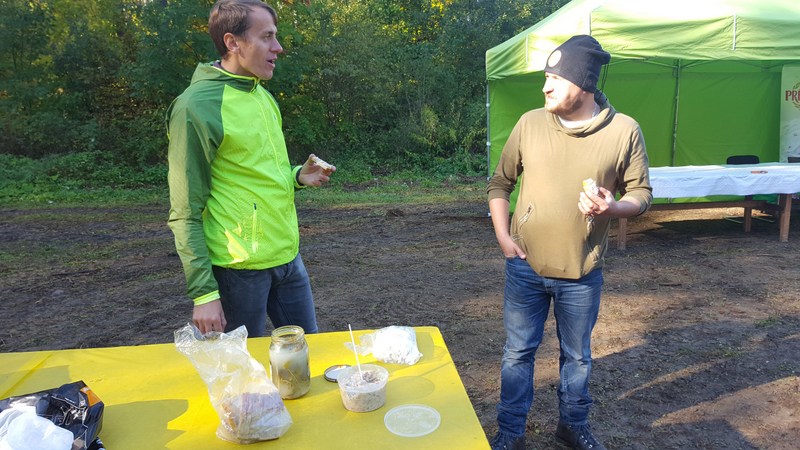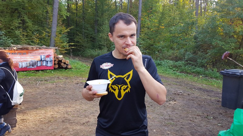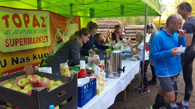Sylwia i Weronika: – Poznałyśmy się tutaj przez Pawła Kowalczyka z Jackiem Bryskiewiczem i z całą resztą, zaczęłyśmy z nimi biegać i staramy się pomagać w organizacji biegów. Dziś jedzenie mamy przepyszne: zupa pomidorowa, krem z dyni, bigos, smalec z chlebem i ogórkami, batony, jabłka, kawa, herbata, woda – wyliczają. I kiełbaska znad ogniska, oczywiście.